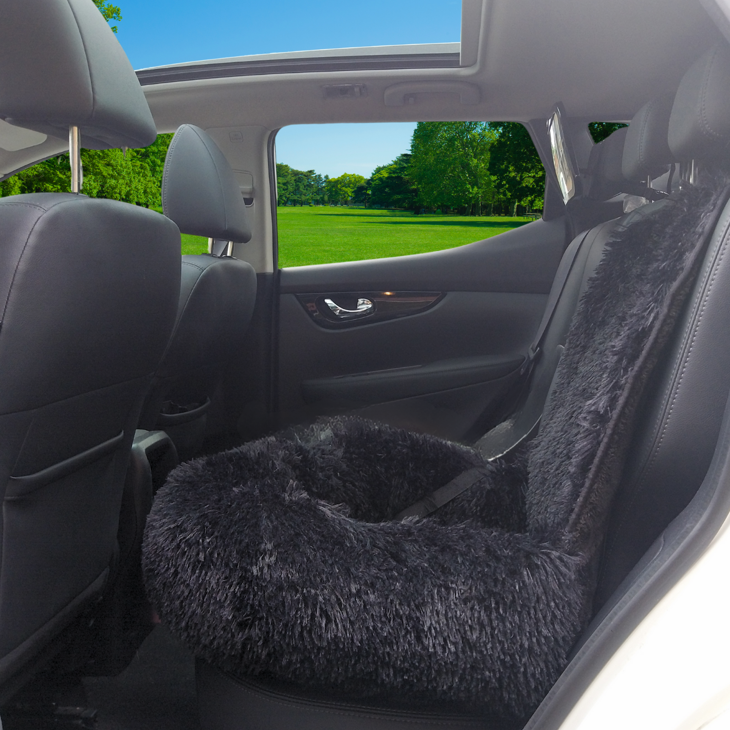 Autostoel Fluffy - De Ideale Hondenstoel Voor Onderweg - Zwart M Achterbank