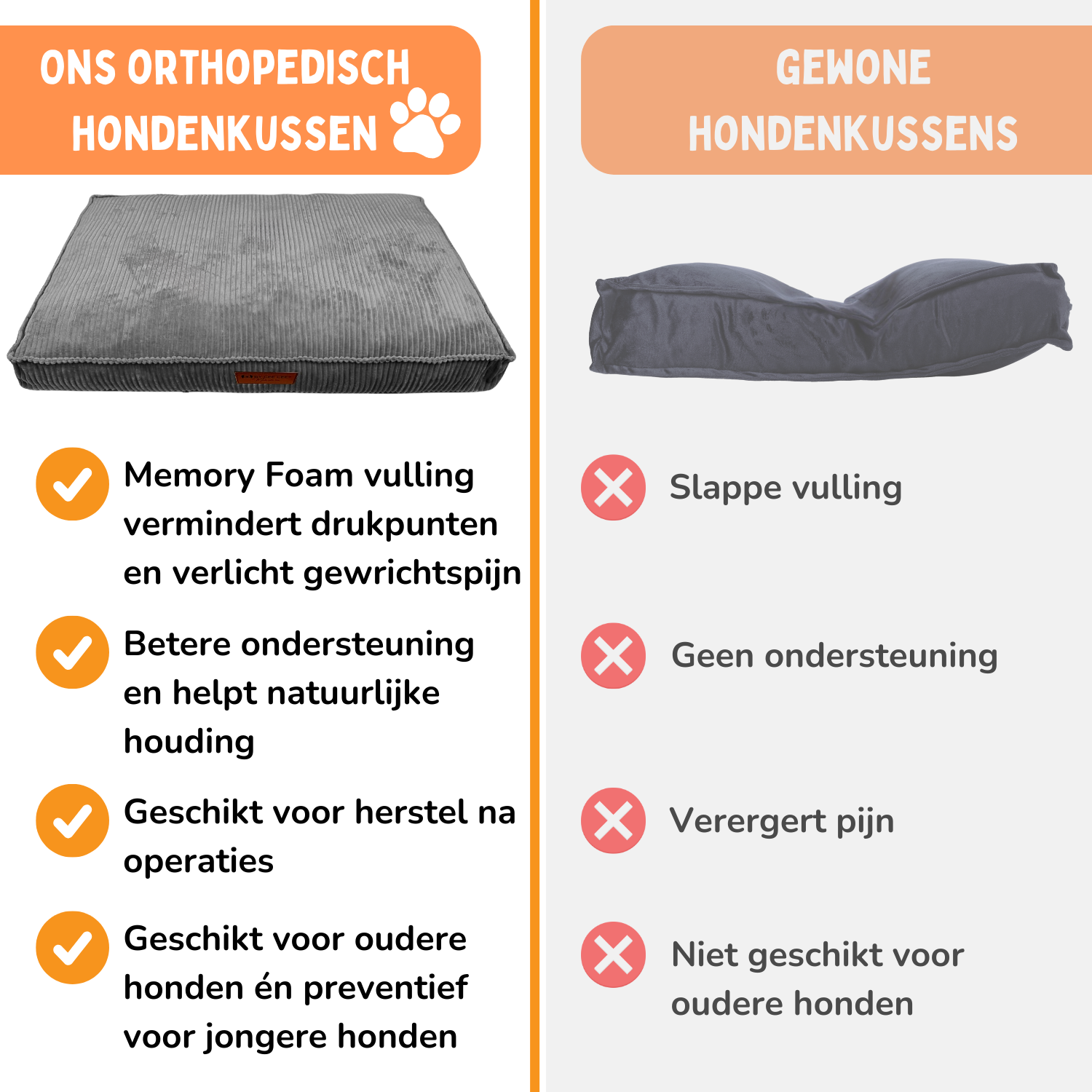 Optimale gewrichtsondersteuning: De hoogwaardige orthopedische schuimlaag biedt uitstekende drukverdeling, waardoor pijnlijke gewrichten, spieren en botten worden ontlast. Perfect voor honden met artritis, heupdysplasie of andere gewrichtsproblemen. Ook volledig gezonde honden profiteren van deze ondersteuning en kan zelfs problemen in de toekomst helpen voorkomen.