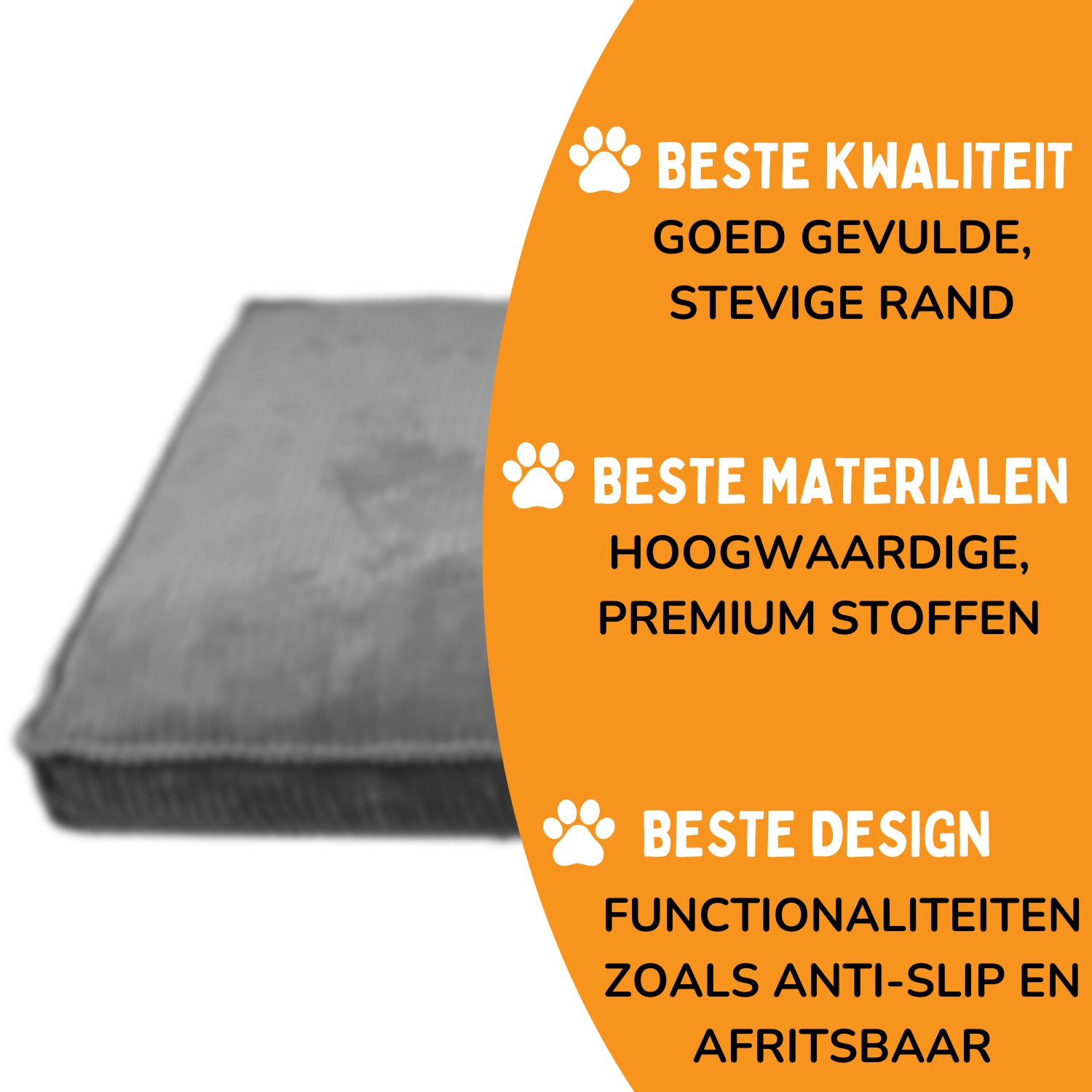 Afneembare, wasbare hoes: Hygiëne is belangrijk! Daarom heeft dit hondenbed een afneembare hoes die gemakkelijk te wassen is. Zo blijft het bed altijd fris en schoon, zelfs na de modderigste wandelingen.