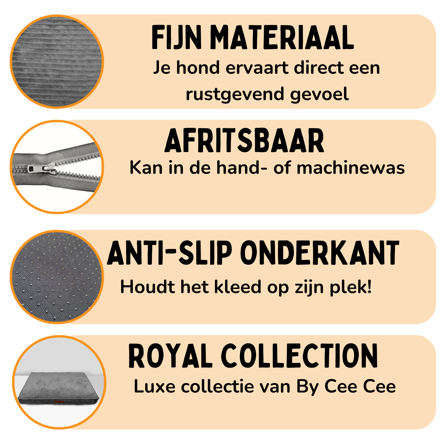 Luxe en stijlvol design: Naast comfort heeft By Cee Cee ook gedacht aan stijl. Het hondenkussen heeft een elegant en tijdloos ontwerp dat perfect in elk interieur past, of het nu in de woonkamer, slaapkamer of zelfs in de keuken staat. Het is niet voor niks onderdeel van de Royal Collection van By Cee Cee.