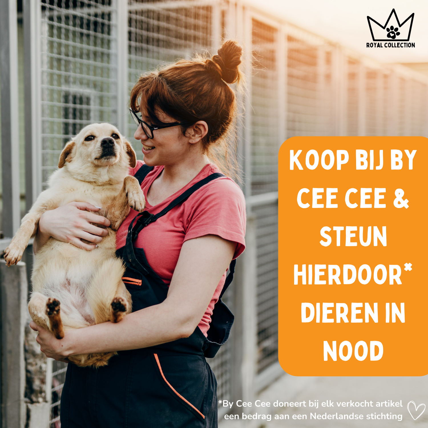 Wij hebben een zeer groot hart voor dieren en vinden het belangrijk om terug te geven aan de maatschappij. Daarom doneert By Cee Cee bij elk verkocht artikel een bedrag aan een Nederlandse stichting.
