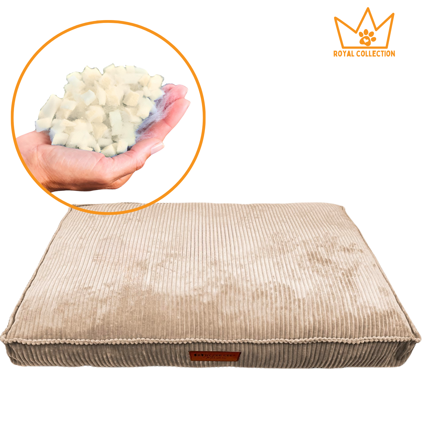 By Cee Cee Origineel Orthopedisch Hondenkussen Rib Lichtbruin - Royal Collection 100x70 - Memory Foam Flakes