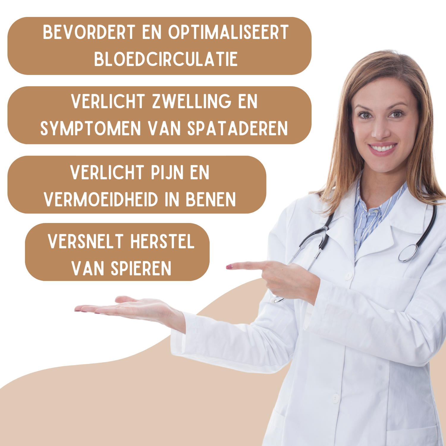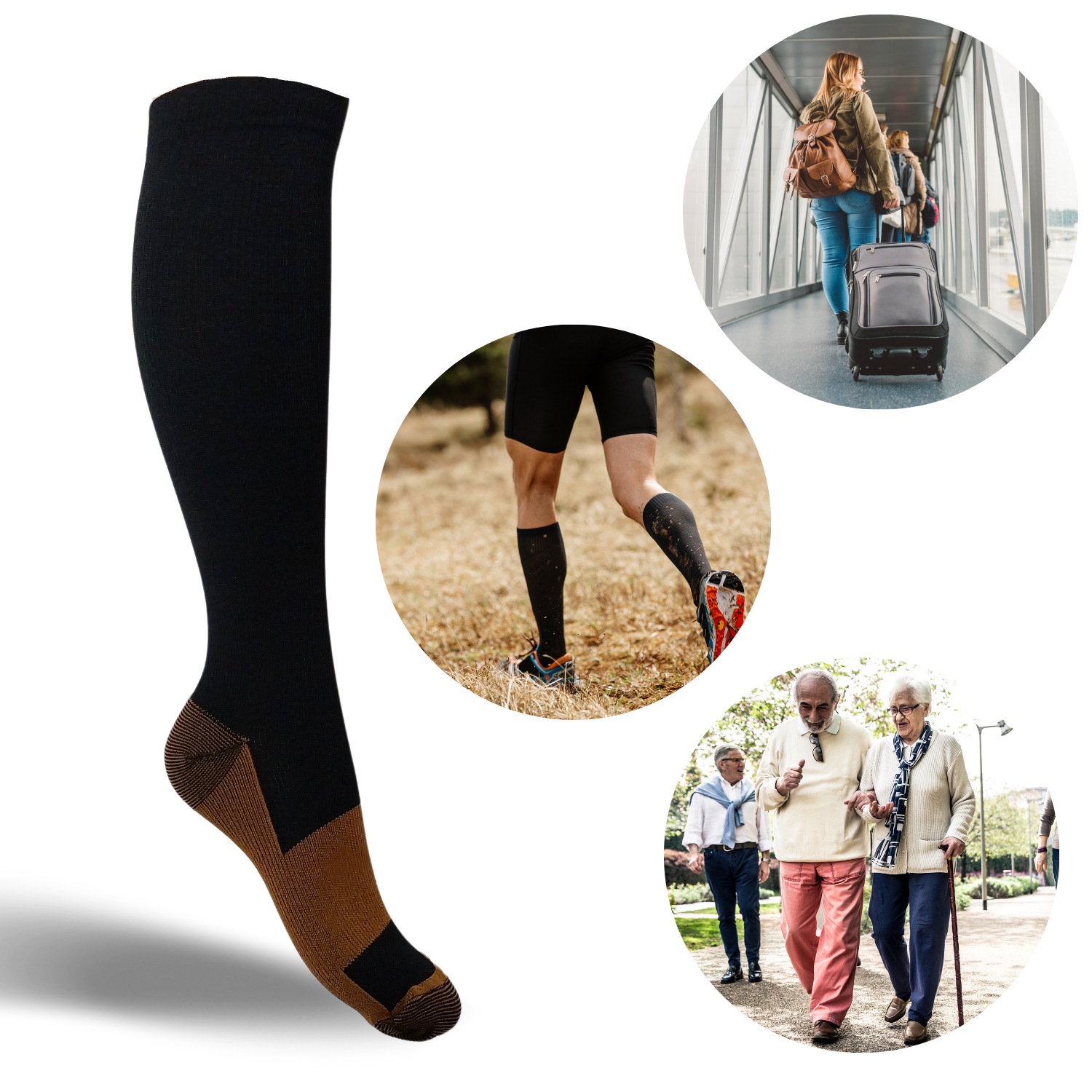 - Voorkomt en vermindert: vermoeide benen, spataders, vervelende pijntjes, krampen, reisbenen en zwellingen