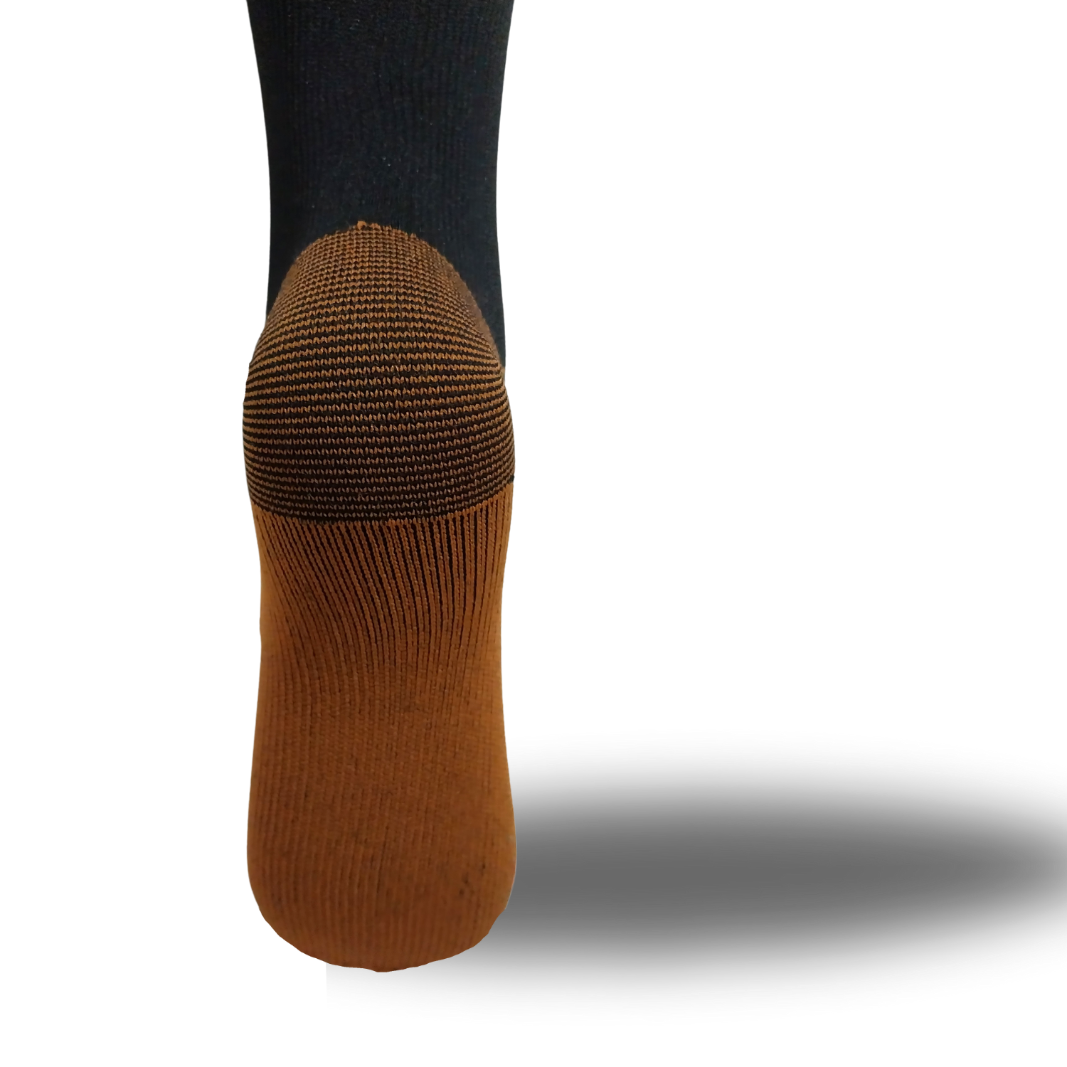 - Plaats je voet in de teen van de sok en laat je hiel soepel in de sok glijden.