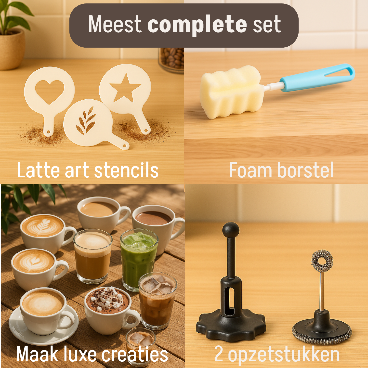 Met de Coopley 4-in-1 elektrische melkopschuimer maak je in een handomdraai cappuccino, latte macchiato, warme chocolademelk of een iced freddo – precies zoals jij hem wilt. Dankzij de vier standen, stille werking en meegeleverde accessoires zoals latte art stencils en een schoonmaaksponsje, haal je een complete barista-ervaring in huis.
