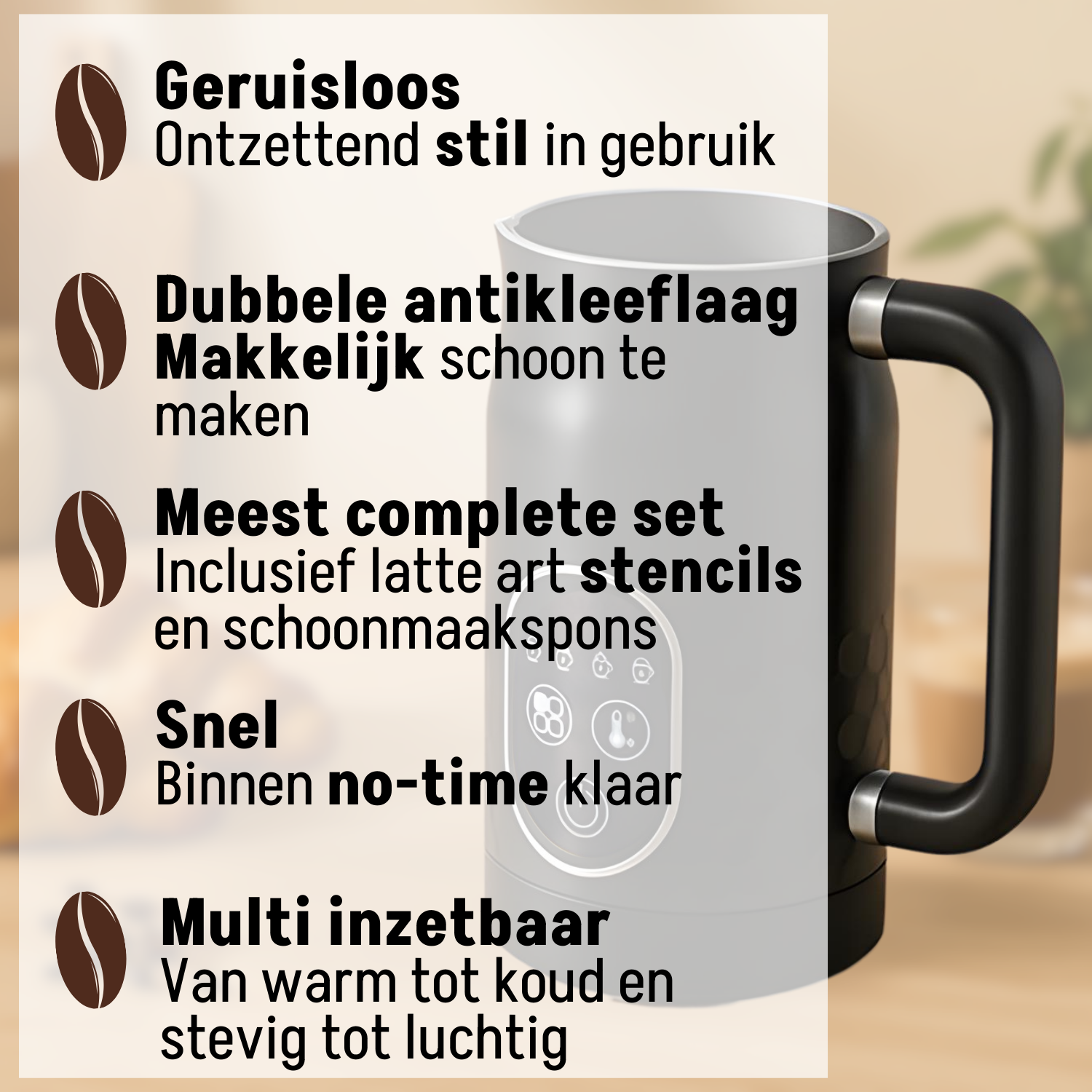 Word nu thuis zelf Barista met de MF0803 PRO van Coopley en verwen jezelf elke dag met de luxe van perfect melkschuim!