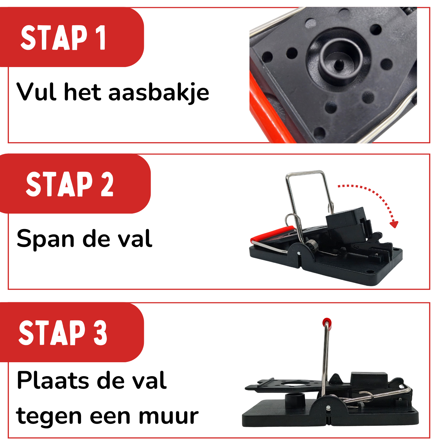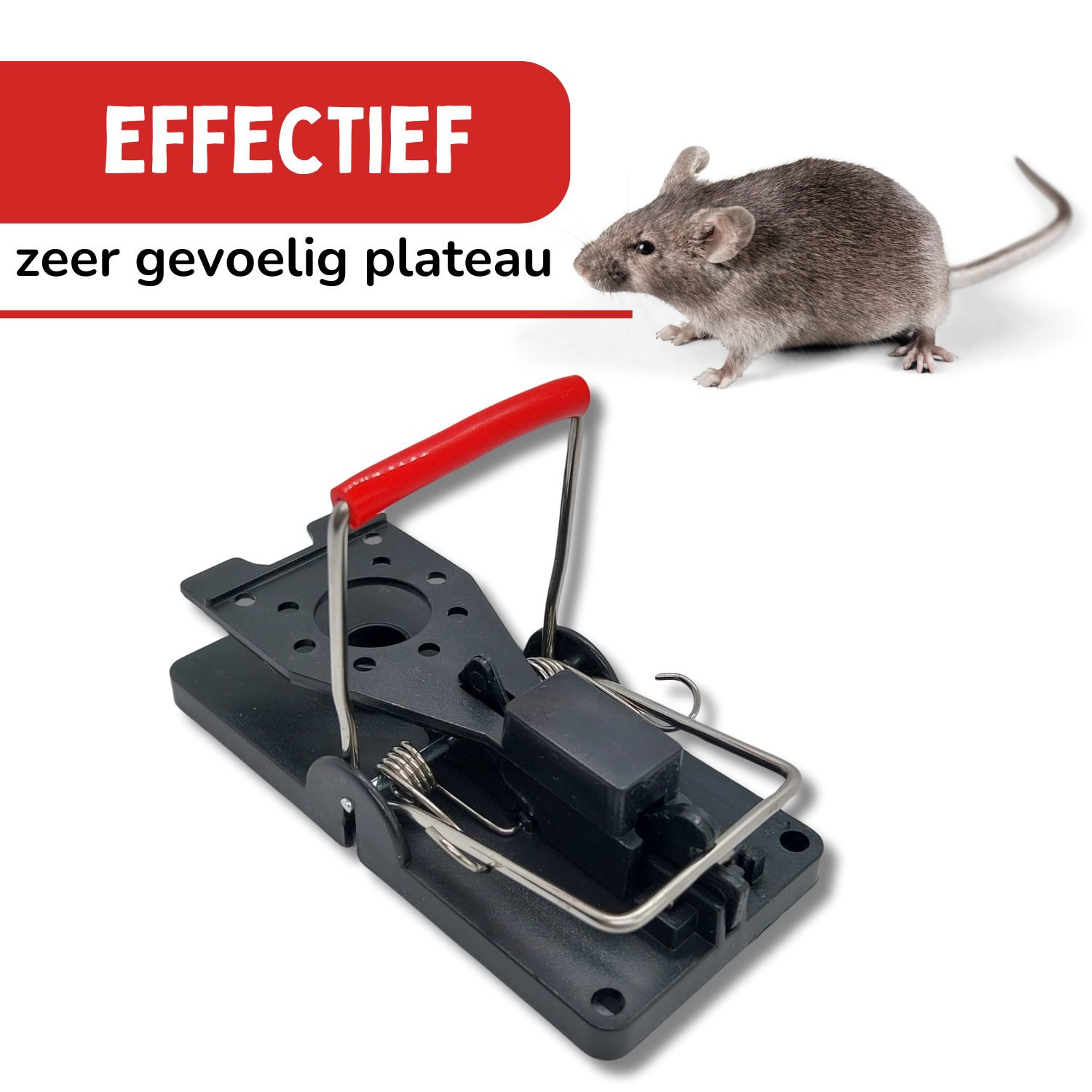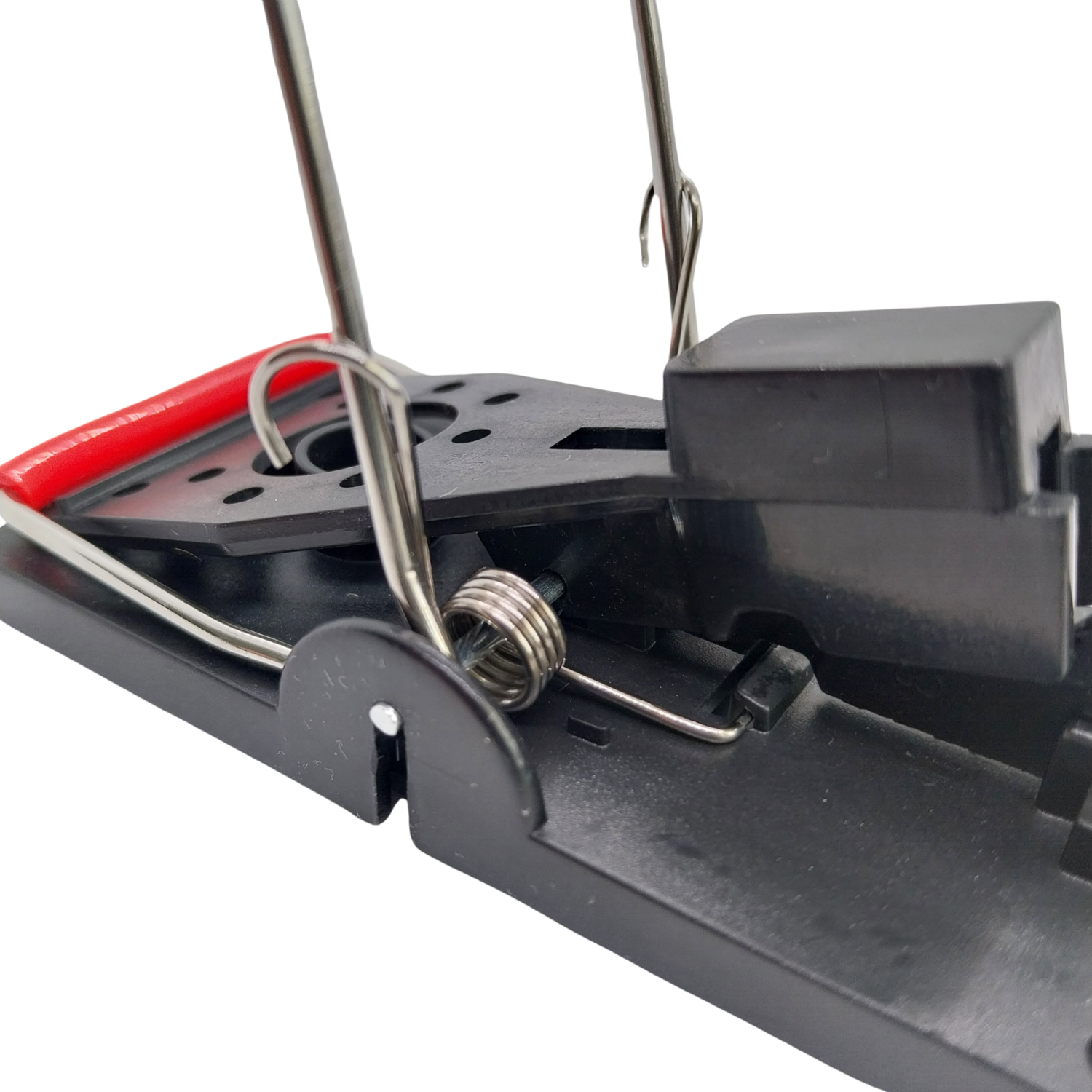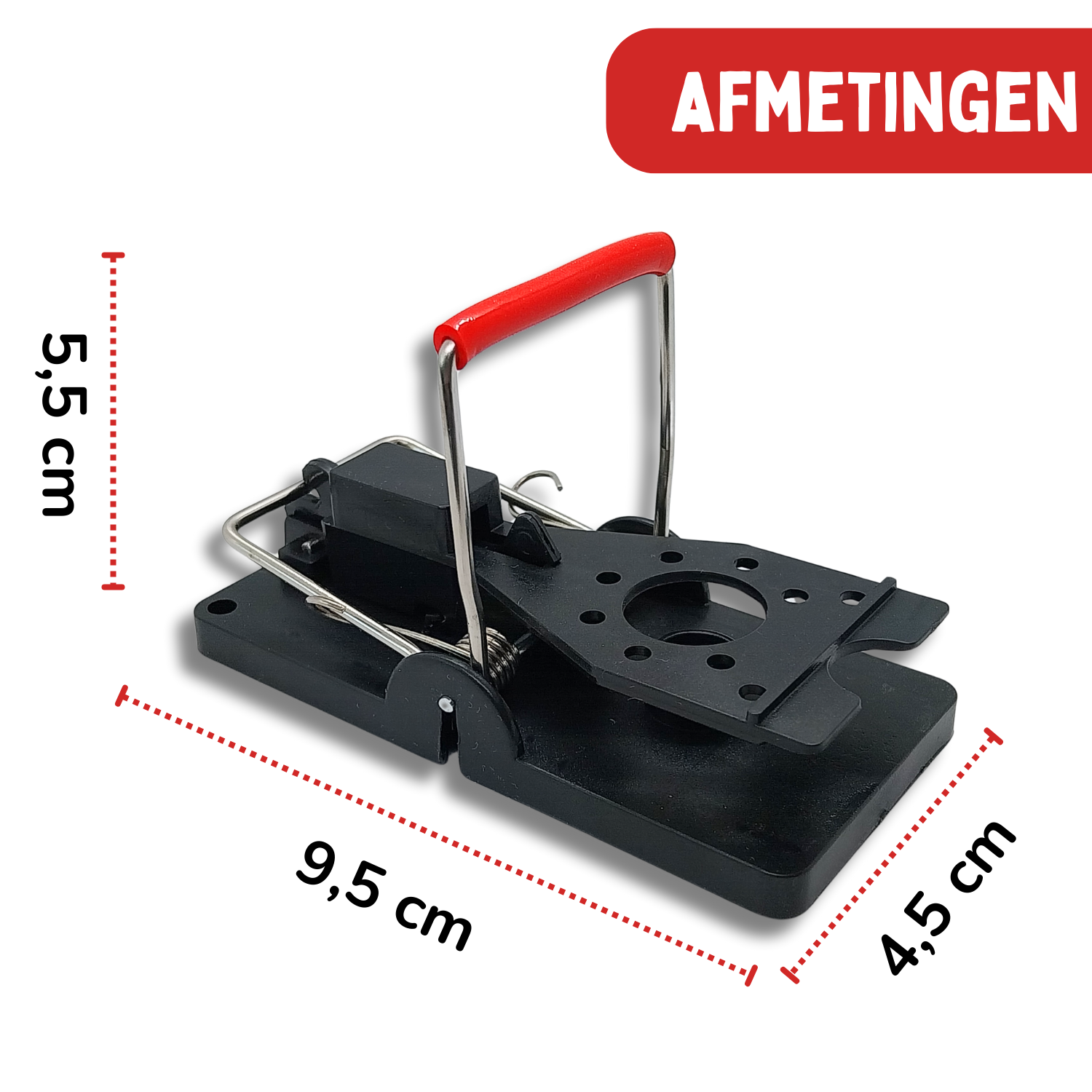 Wat deze muizenvallen écht onderscheidt, is de ingenieuze toevoeging van de rode, verdikte rubberen staaf, die de pakkans aanzienlijk verhoogt. Deze slimme technologie zorgt voor een onmiddellijke dood en minimaliseert de kans op bloedingen.