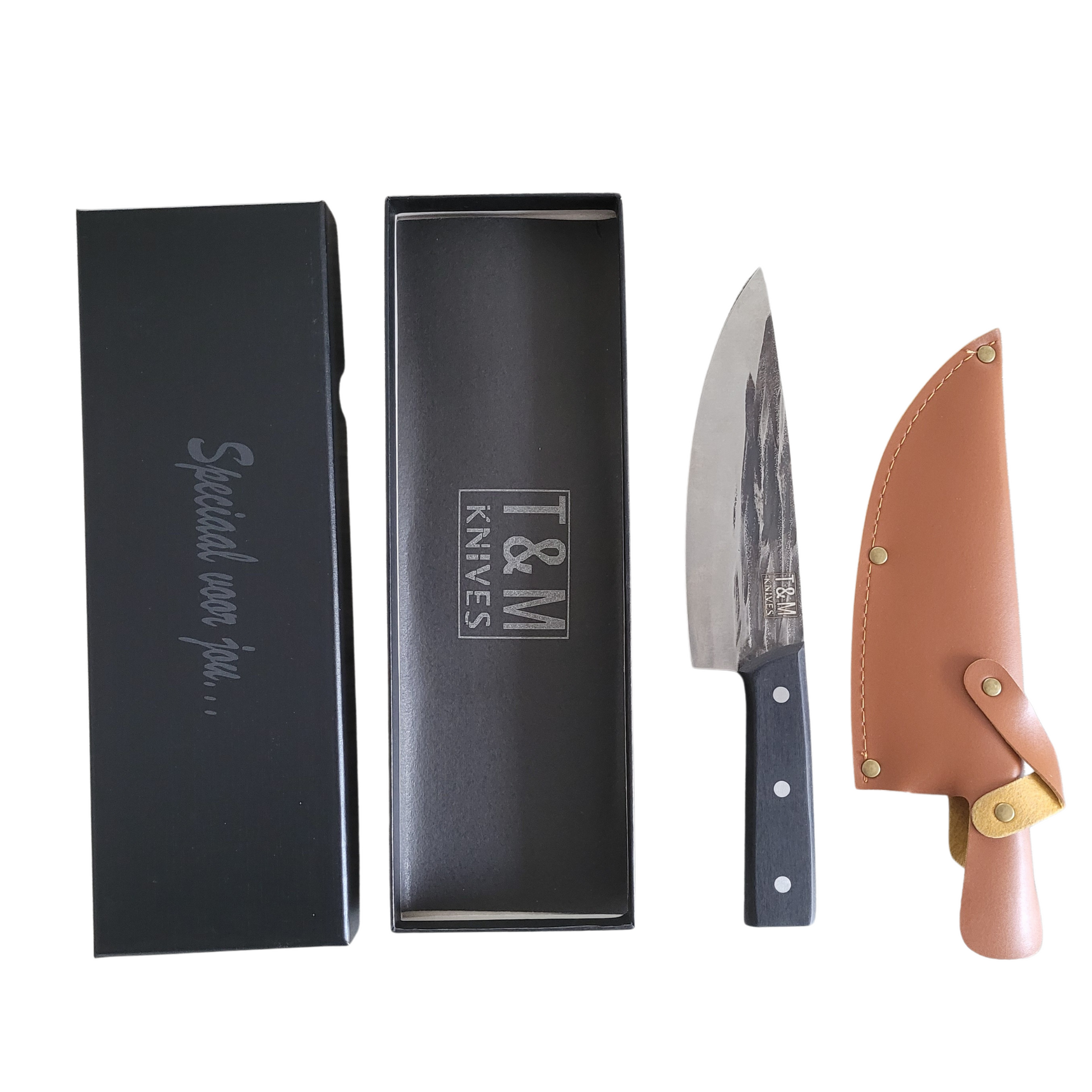 De messen van T&M Knives zijn uniek aangezien het grootste deel met de hand is gemaakt. Dit zorgt ervoor dat een mes pas de werkplaats verlaat wanneer deze perfect in de hand ligt en de ideale balans heeft.